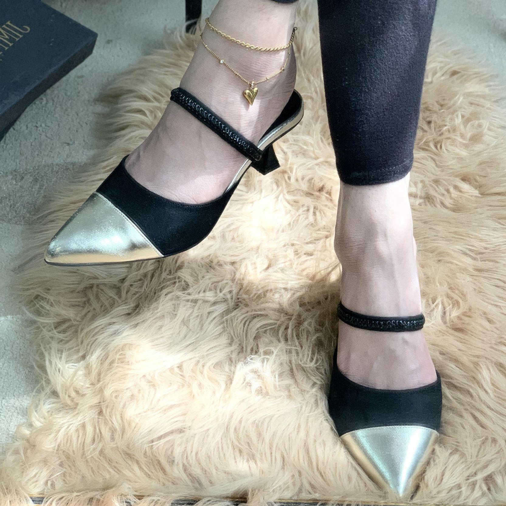 The AURORA FH33 HEEL by Jimmy Choo offers a sleek and stylish option for any outfit. With a black and golden color scheme, these kitten heels are perfect for any occasion. Available in sizes 36 to 41, they also come with a brand box for safe storage. Elevate your look with these fashionable heels.