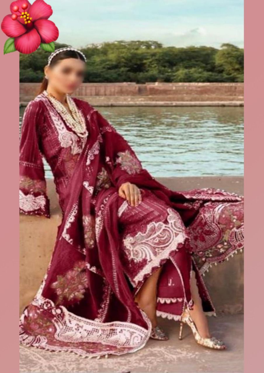 lawn fully heavy scifflie embroidered front with fully heavy embroidered neck with fully heavy embroidered light & left daman embroidered boarder with embroidered chak patti