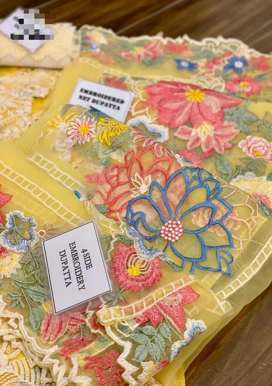organza fully heavy embroidered dupatta with cut work with 2 side heavy embroidered pallou boarder attach with cut work