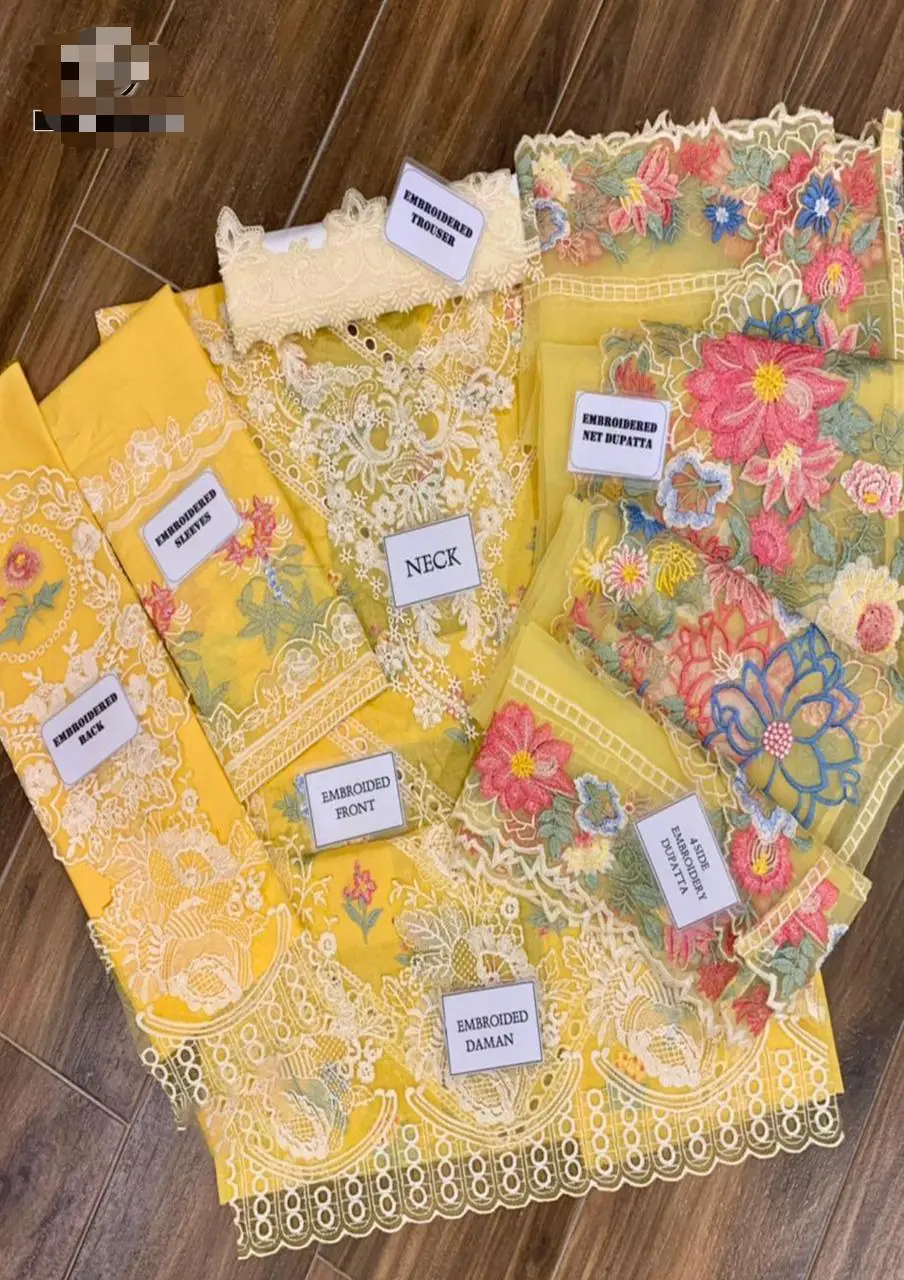 plain lawn back with fully heavy embroidered back bunch with heavy embroidered spengle work back daman boarder