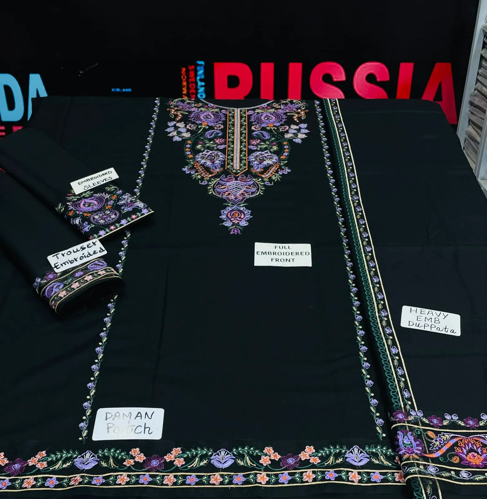 ZARA SHAHJAHAN 3PC Dhanak stuff Same as pic Neck emb Salivees emb Shawl Embroidered Daman patch Back emb Back patch Free Delivery